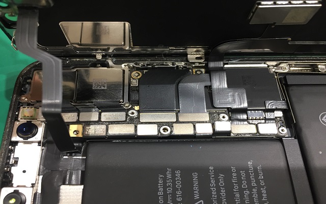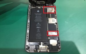 2.バッテリーコネクタ、液晶コネクタ、イヤースピーカーコネクタの順に接続を外していきます。