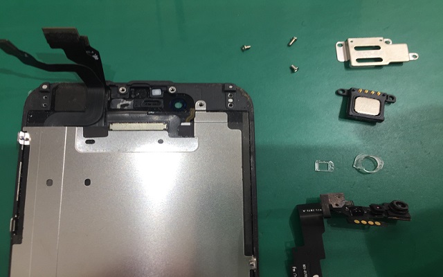 6.メタルカバーのネジ3本を外すと下にあるイヤースピーカー、インカメラも取り外すことが出来ます。