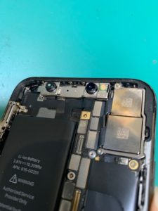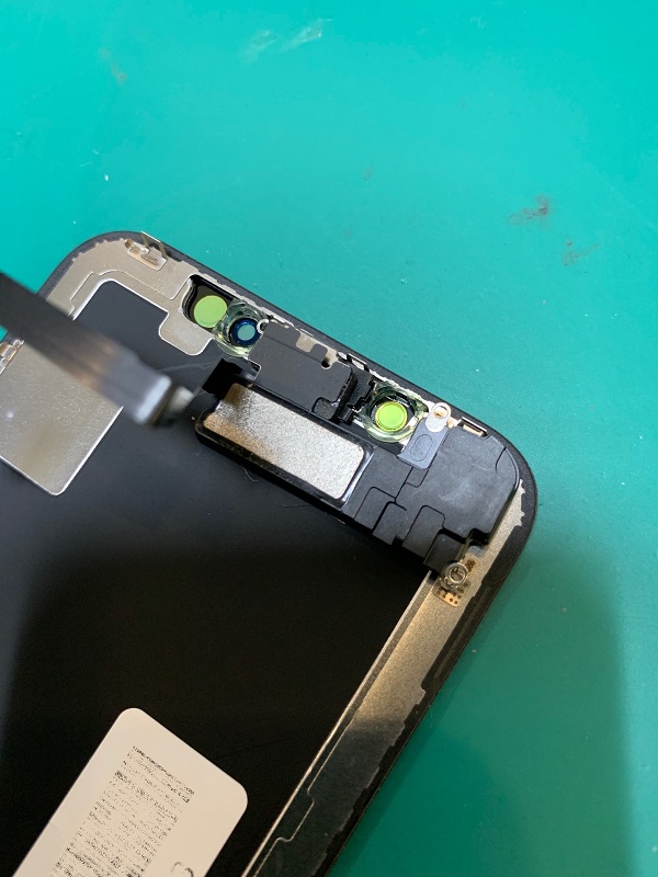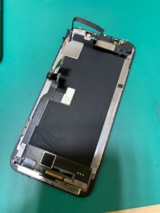iPhoneXはホームボタンがなくなっているので、移植するパーツはこのケーブルのみになります。パーツが少ないので助かりますが、パネルとの接着部分はかなり強力。なかなか撮影しながらはがしていく…ということができないため、外したあとの撮影です(*_*;