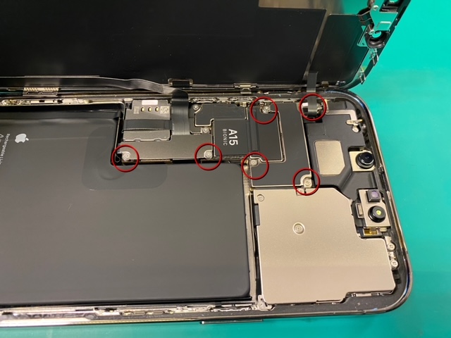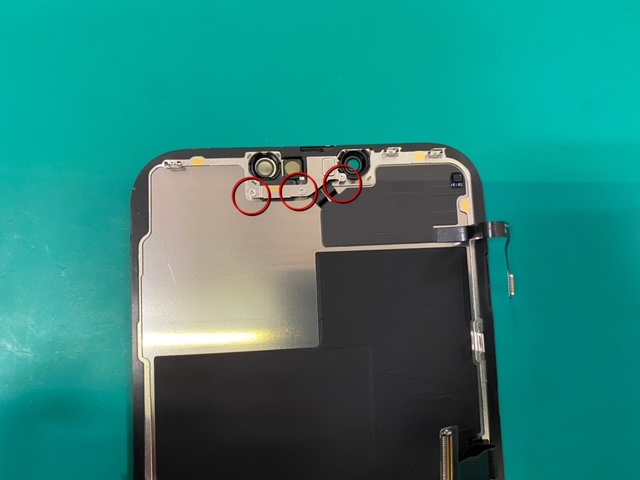 3つネジで取り付けられたイヤスピーカーを外していきます。