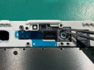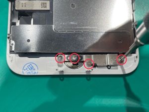17.プレートがつけられたらホームボタンを入れ、コネクタを付け、プレートとネジを止めます。