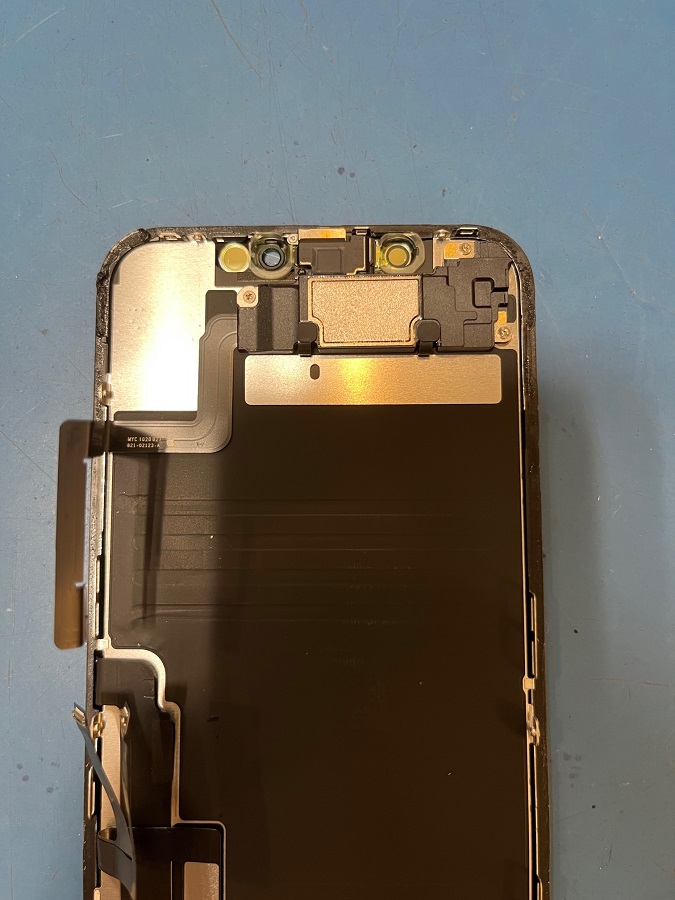 イヤースピーカーを起こすと、横長のメタルカバーが見えてくるので、これを取り除いてから外します。