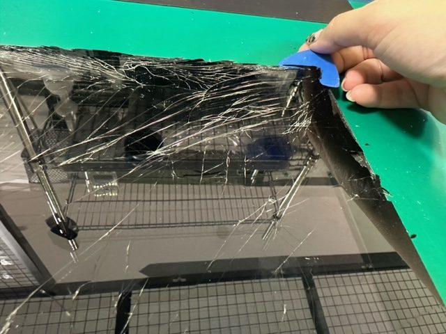 内部に張り付けられた防塵シールをパネルの隙間から専用ヘラを使用してはがしていきます。