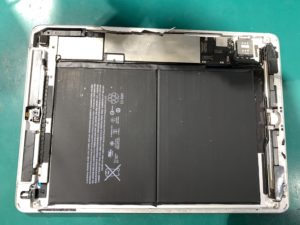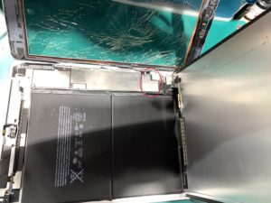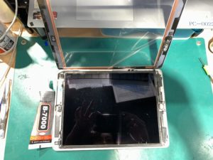 iPadは画面が粘着でとまっているため、前のパネルの粘着が残ったまま修理を進めてしまうと新しく付けるパネルが浮いてしまう原因になります。