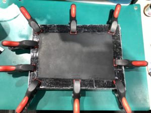 パネルと本体をくっつける為、接着剤を塗布しパネルを閉めていきます。 この際パネルで敗戦を挟み込まないよう慎重に締めます。