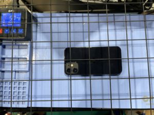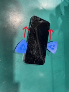 2.iPhone12以降のシリーズは画面と本体の接着が固い為、加熱マットで両面一分ずつ温め、粘着を弱めてから開けます。