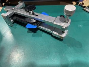 接着の強いマイクの部分は左側からへらを入れて傷つけないように取ります。