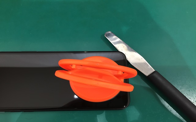2.専用のヘラと吸盤を使い、画面を本体から慎重に外していきます。