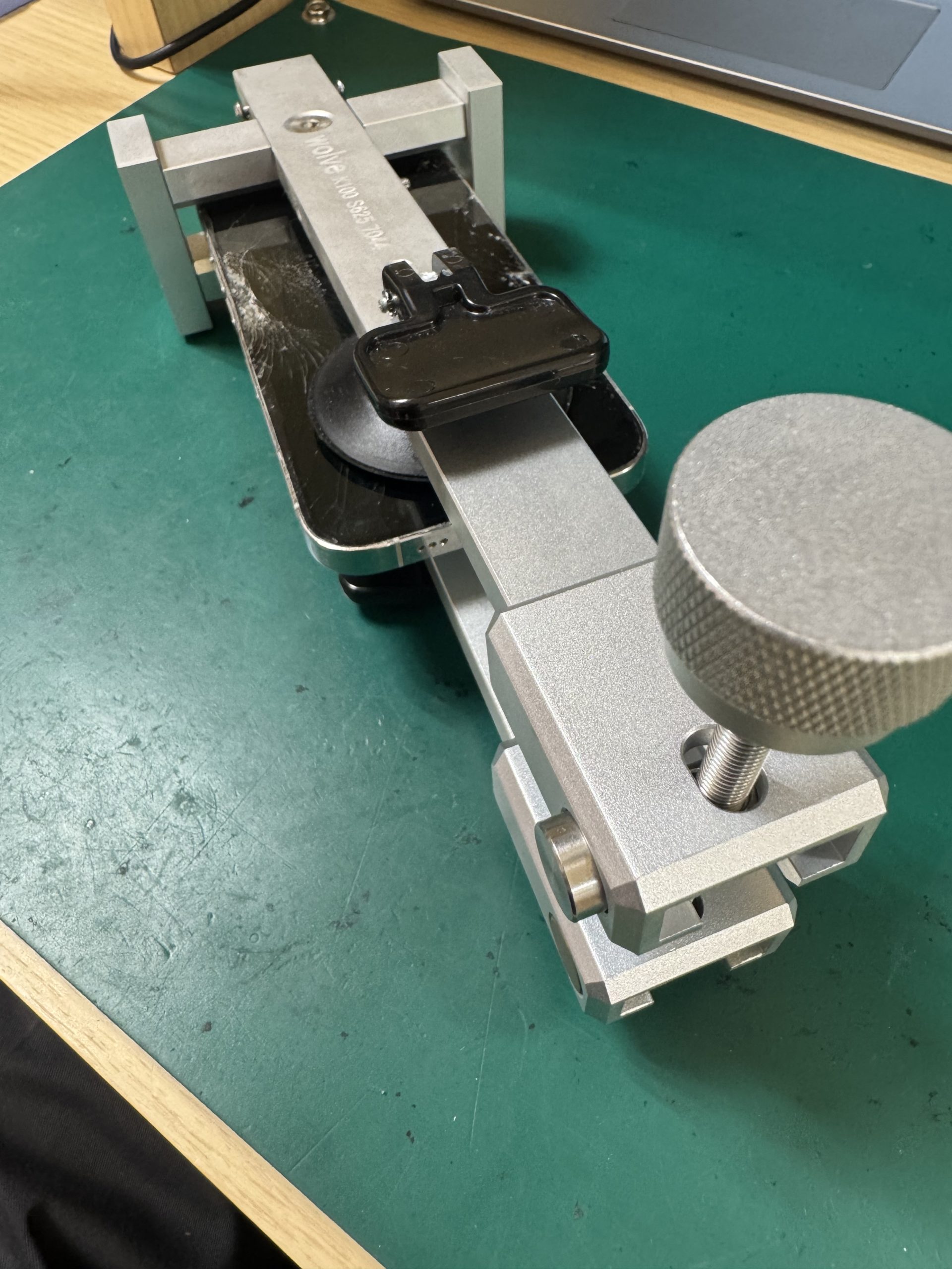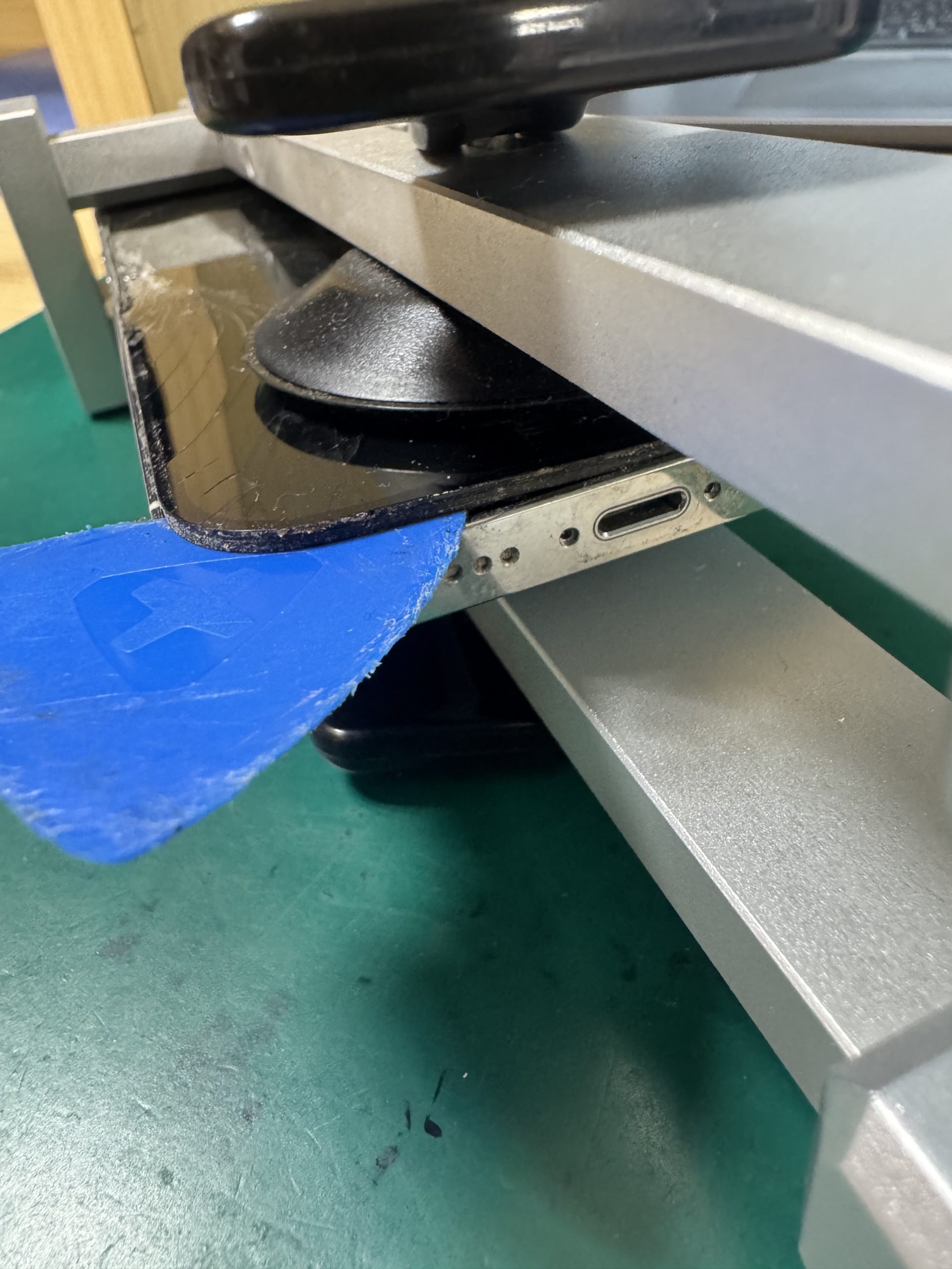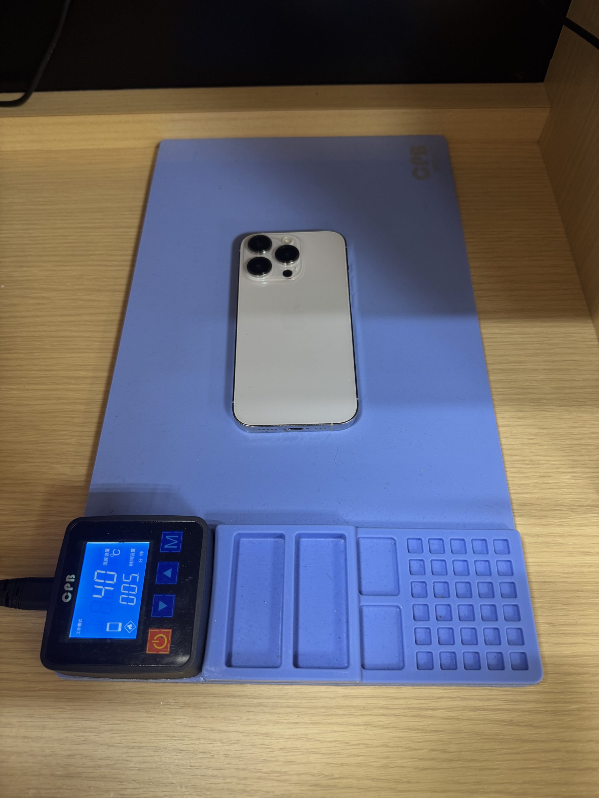 14シリーズは画面の圧着が強いので、加熱マットを使い温め、粘着力を弱めます。