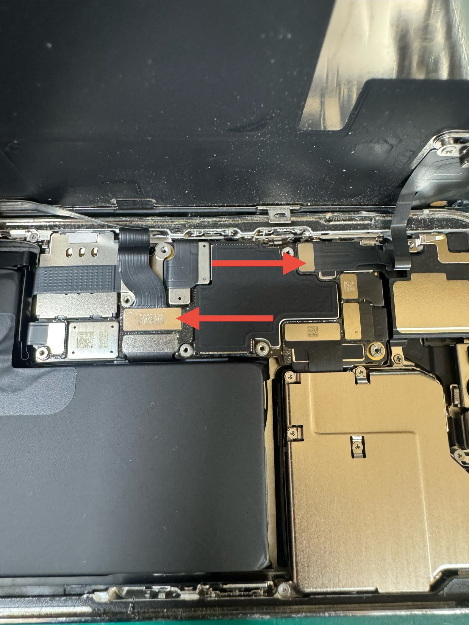 7.カバーを取り外すことができたら、矢印部分のコネクタ部分をヘラで外します。