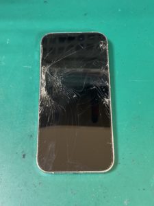 修理前の症状:画面にヒビが入ってしまい、液晶画面が映らなくなっています。