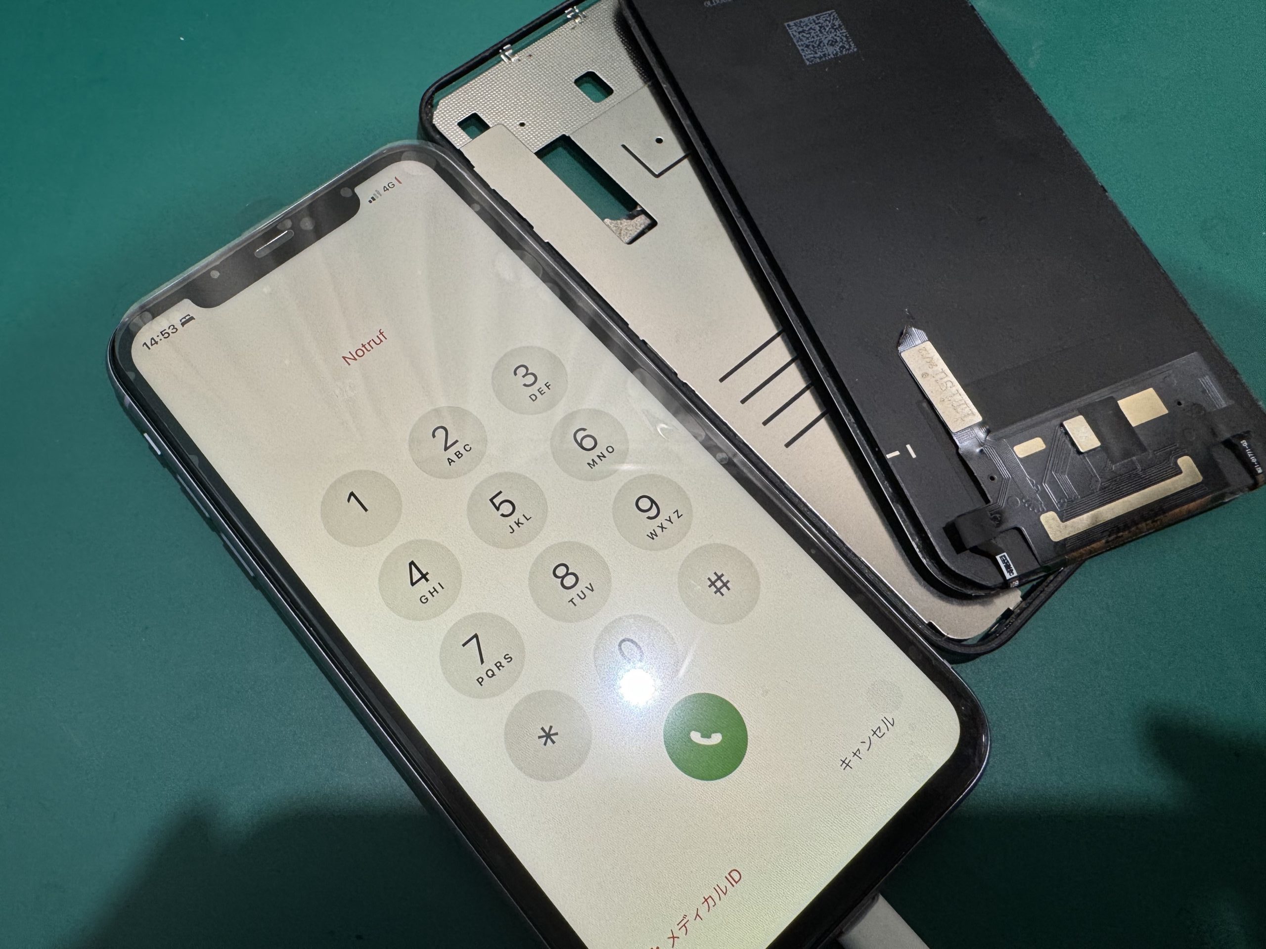 お預かり時、画面が完全に剥離してしまいケーブルが断線してしまっているじょうたいでした😫