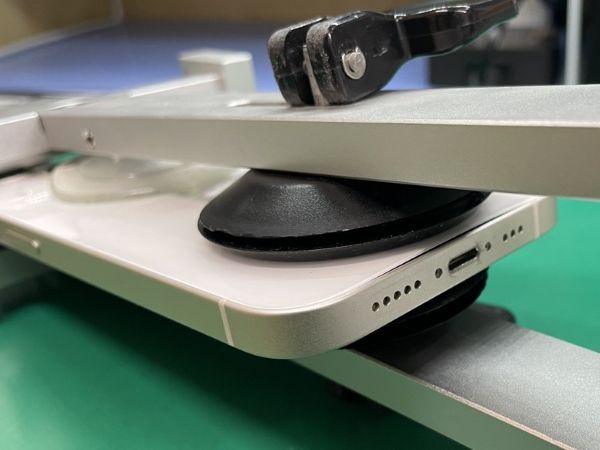 iPhone12以降の端末は画面の粘着が非常に強力となっているため、加熱マットを使用し60~70℃で 温めます。
