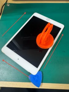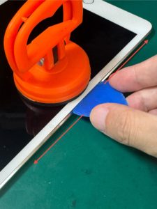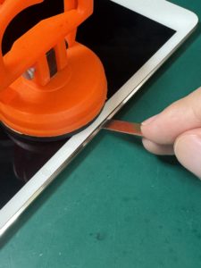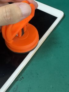 2.端末を温めたら画面に吸盤オープナーを吸着させます。