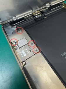 またバッテリーが膨張していたので、取り外す際には破らないようこちらも慎重に粘着を剥がしていきました。