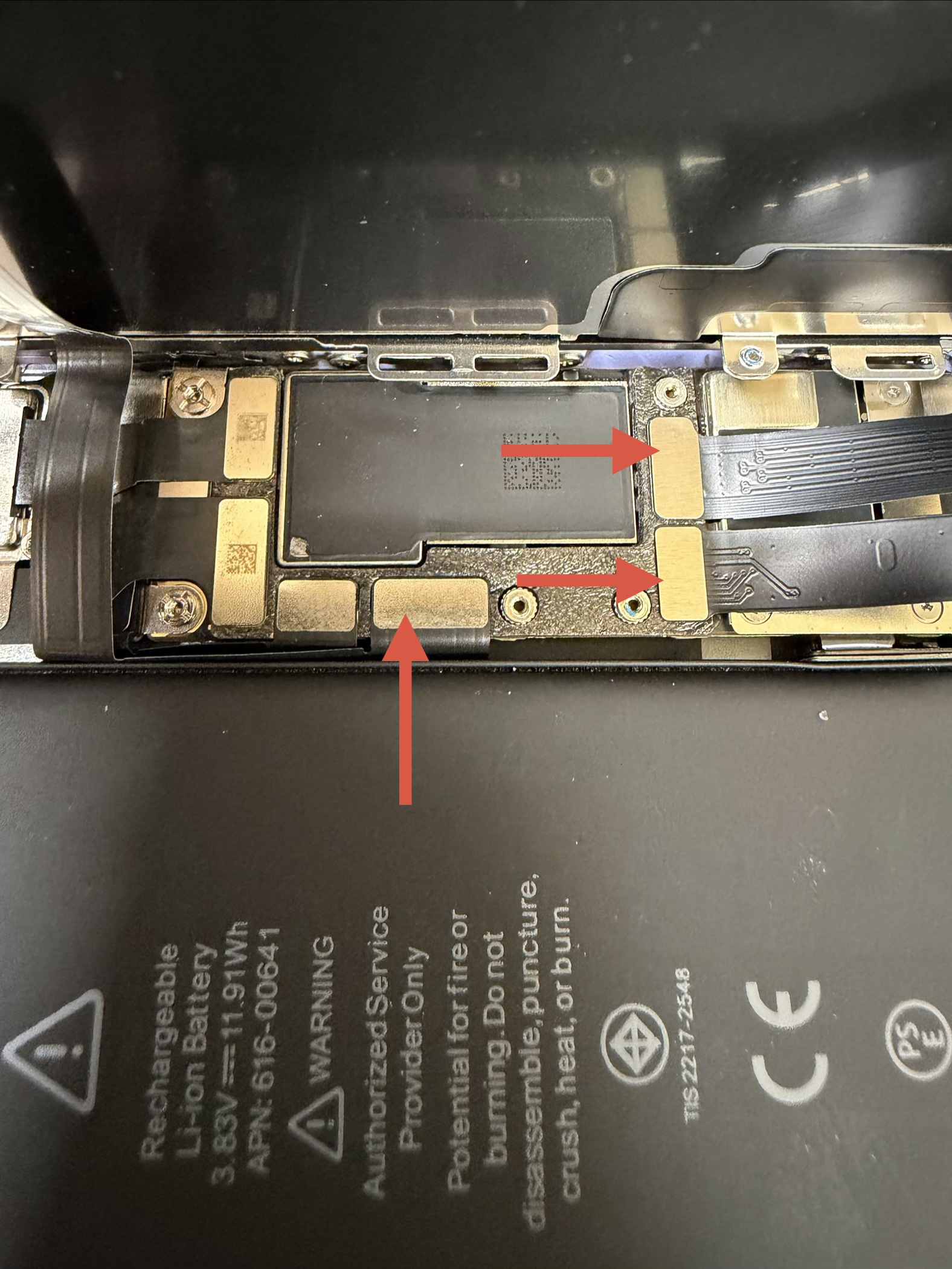 6.カバーを取り外せたら画面と端末が3本のケーブルで繋がっているので