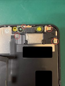 8.画面裏側にある上部にあるイヤースピーカーを取り外します。