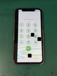 修理前の症状:端末を落としてしまった際に、画面左側や一部見えなくなっております。