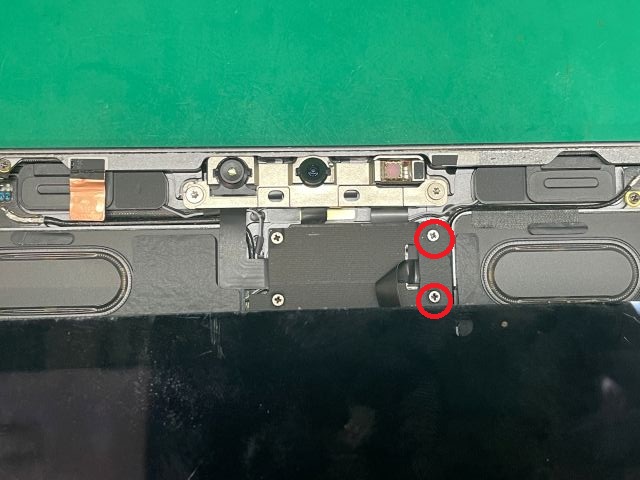 4.四方の粘着がとれたので、画面上部にあるセンサー類のケーブルを外していきます。