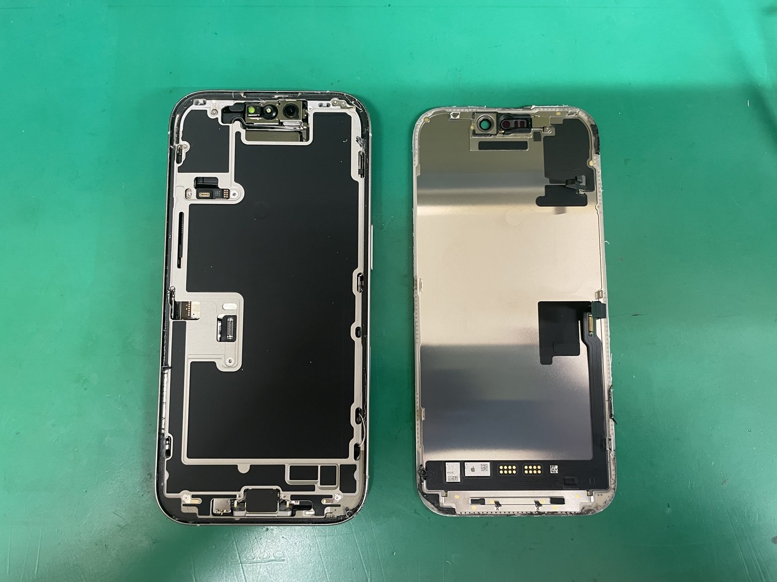 一度画面を取り外した端末は粘着が弱まりホコリや水が入りやすくなるので、当店では新しく貼り付