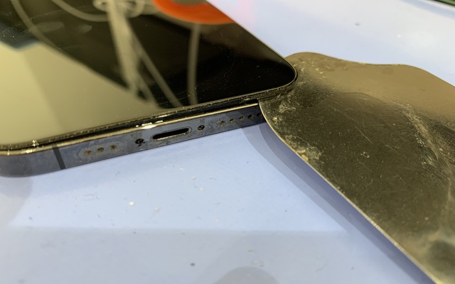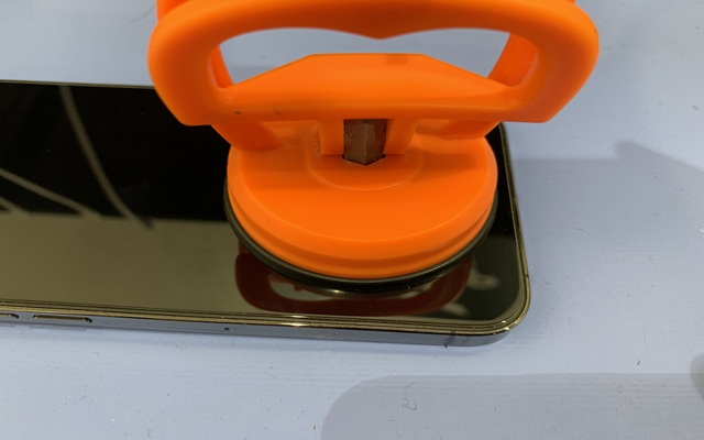 2.今回の13Proは画面が薄く壊れやすく粘着が強力なため、加熱マットの吸盤を併用して分解します。