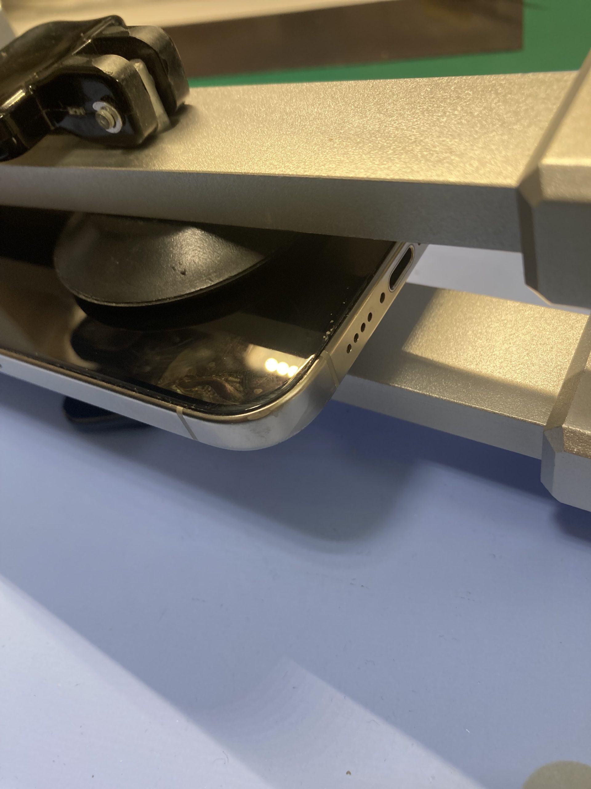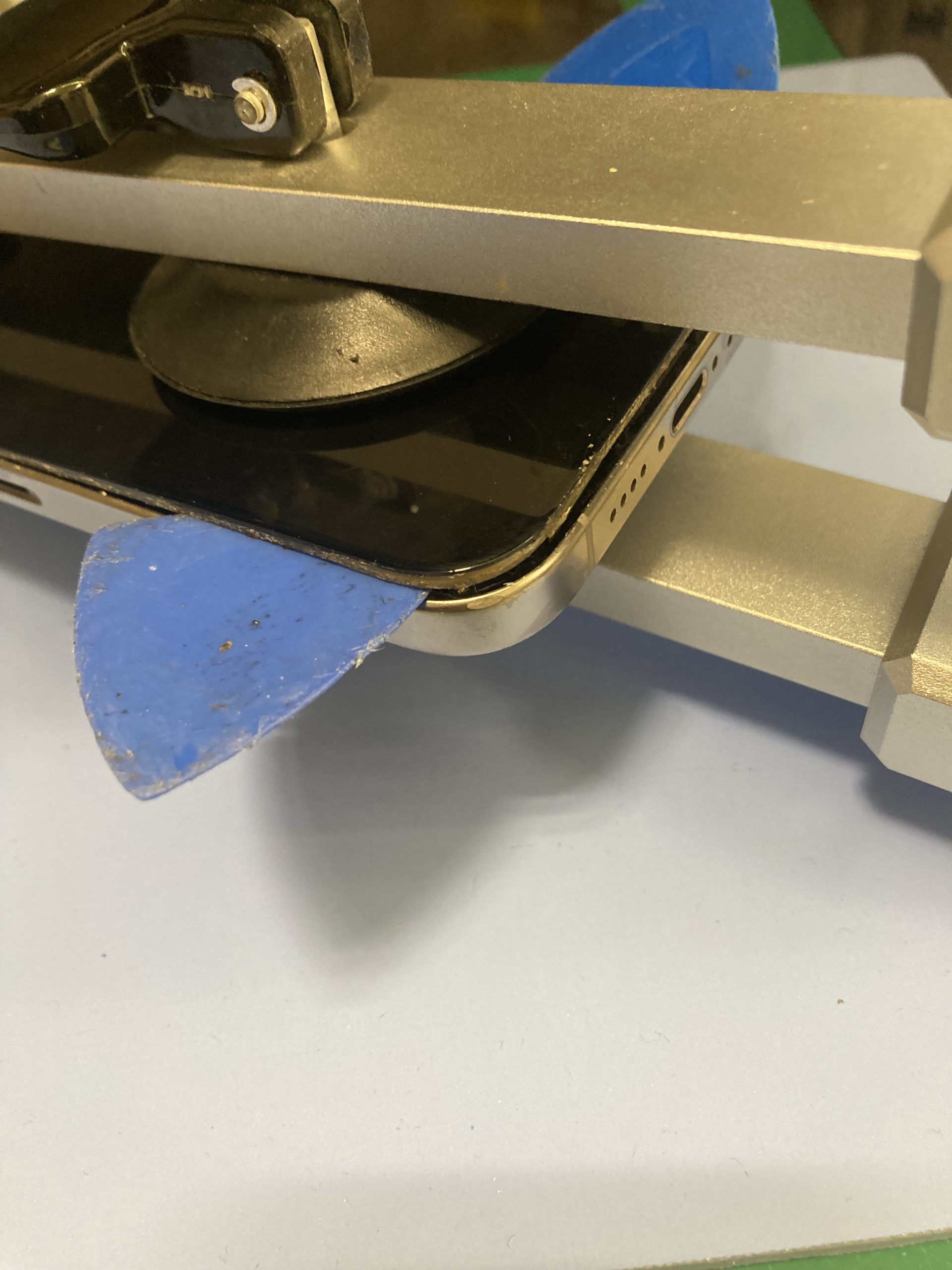 iPhone15シリーズはパネルの圧着が強いため、加熱マットで温めてから開いていきます。
