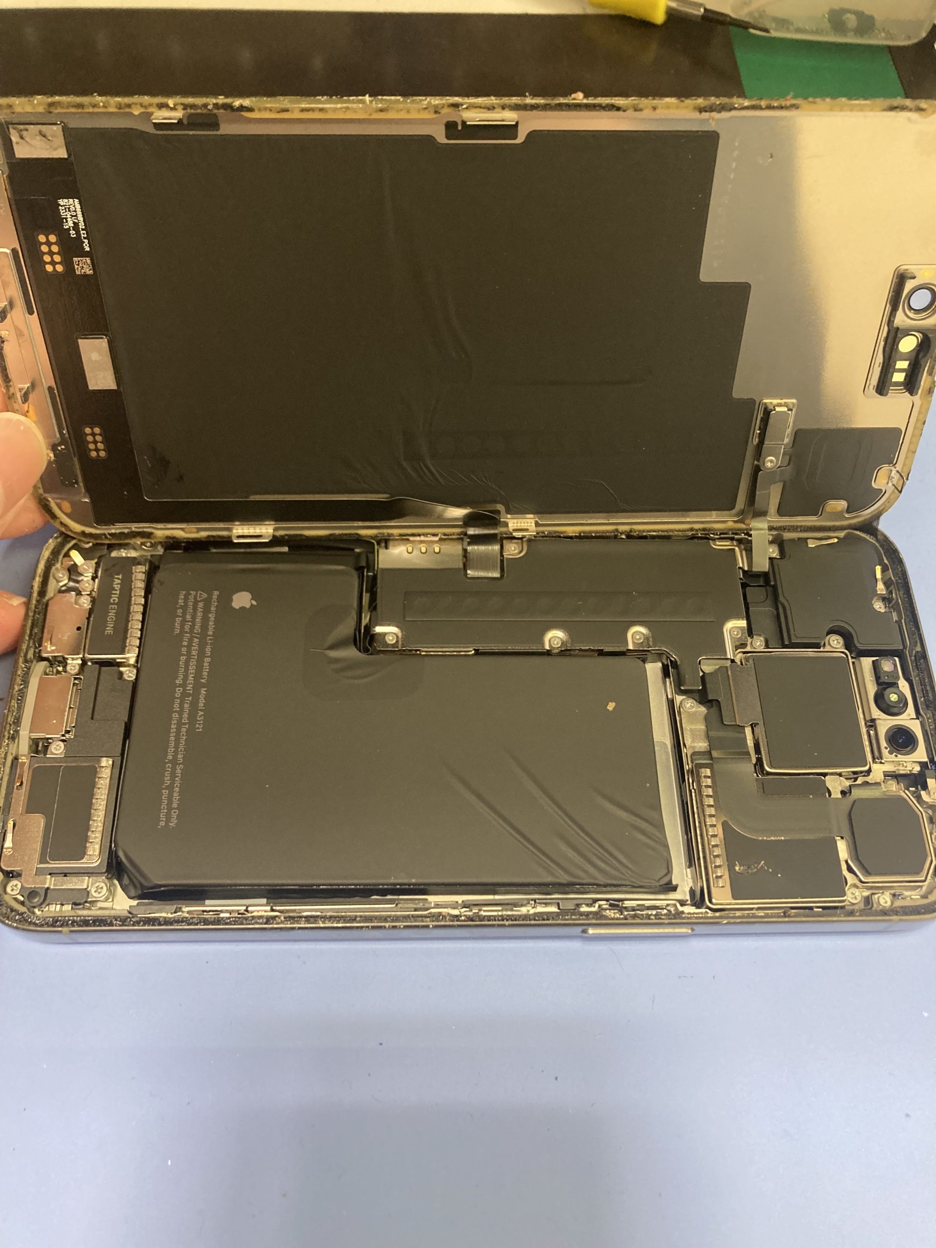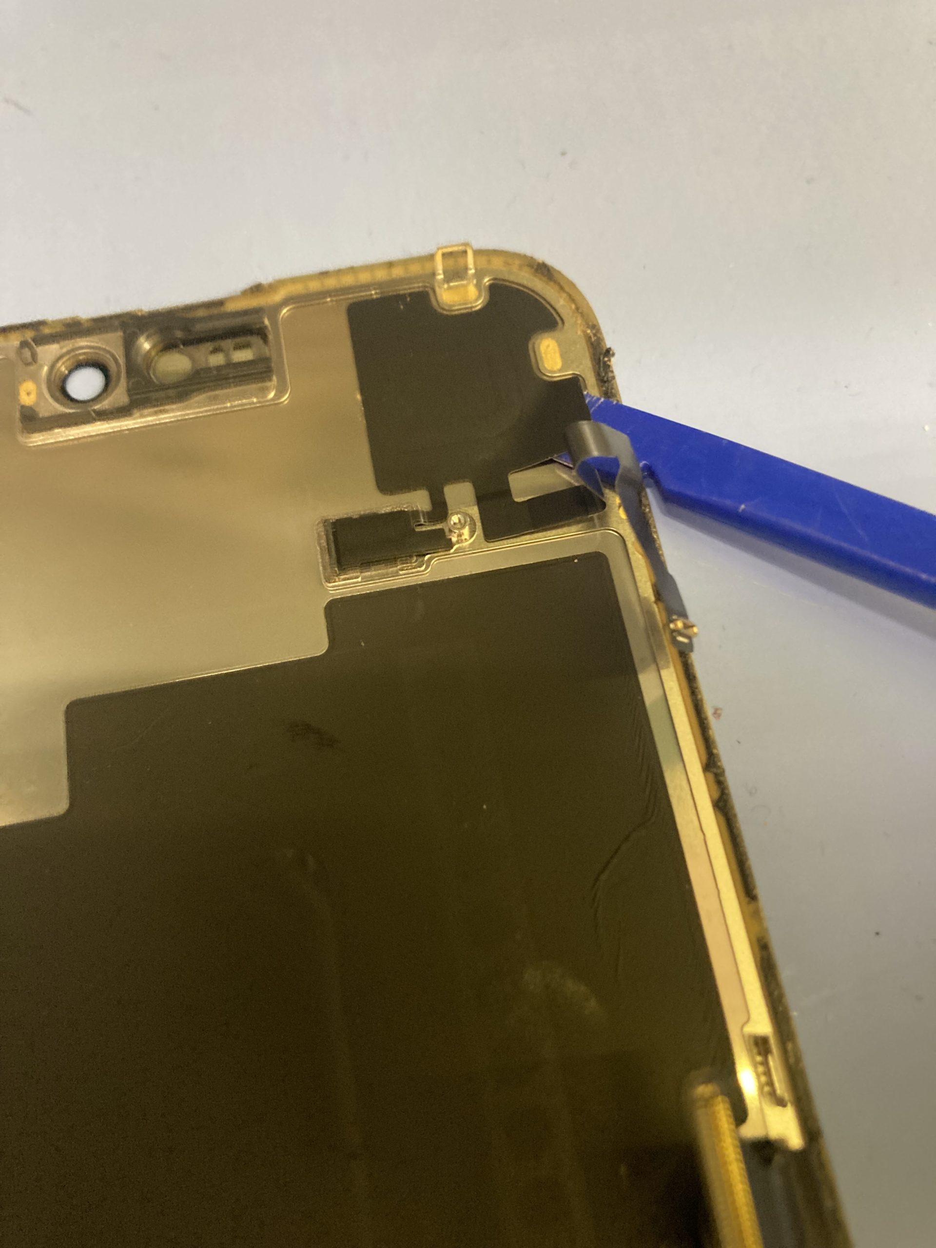 端末を温めたら両面オープナーを使い画面を開けていきます。