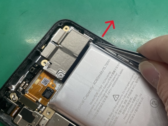 4.バッテリーの上に張り付けられている放熱シートを剥がします。