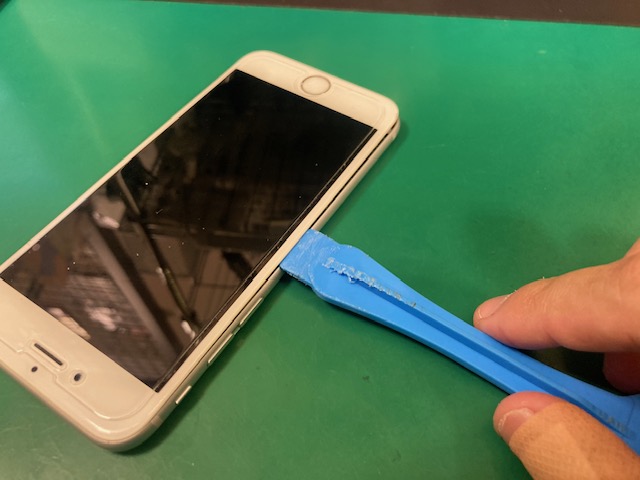 隙間が出来たらプラスチックヘラを差し込み左右に滑らせるように動かして少しずつフロントパネルを開けます。