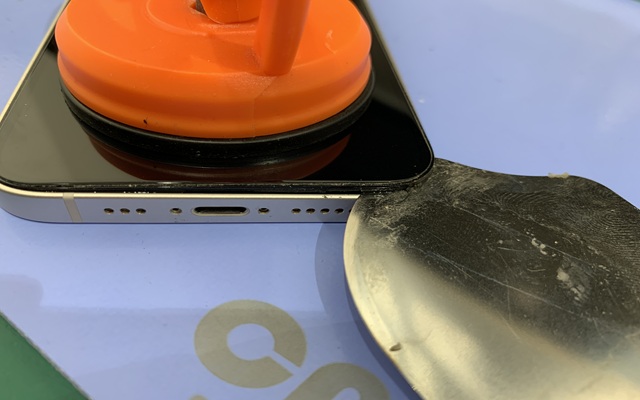 2.画面が薄く壊れやすく粘着が強力なため、加熱マットと吸盤を併用して分解します。