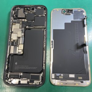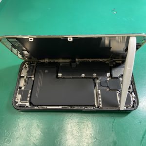 USBコネクター両脇のネジを外し、端末を温めて粘着を弱めていきます。