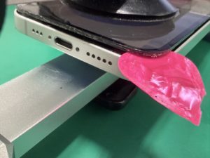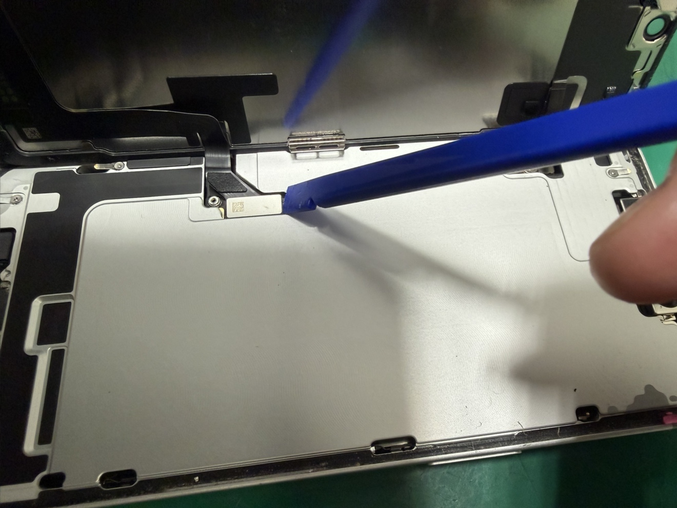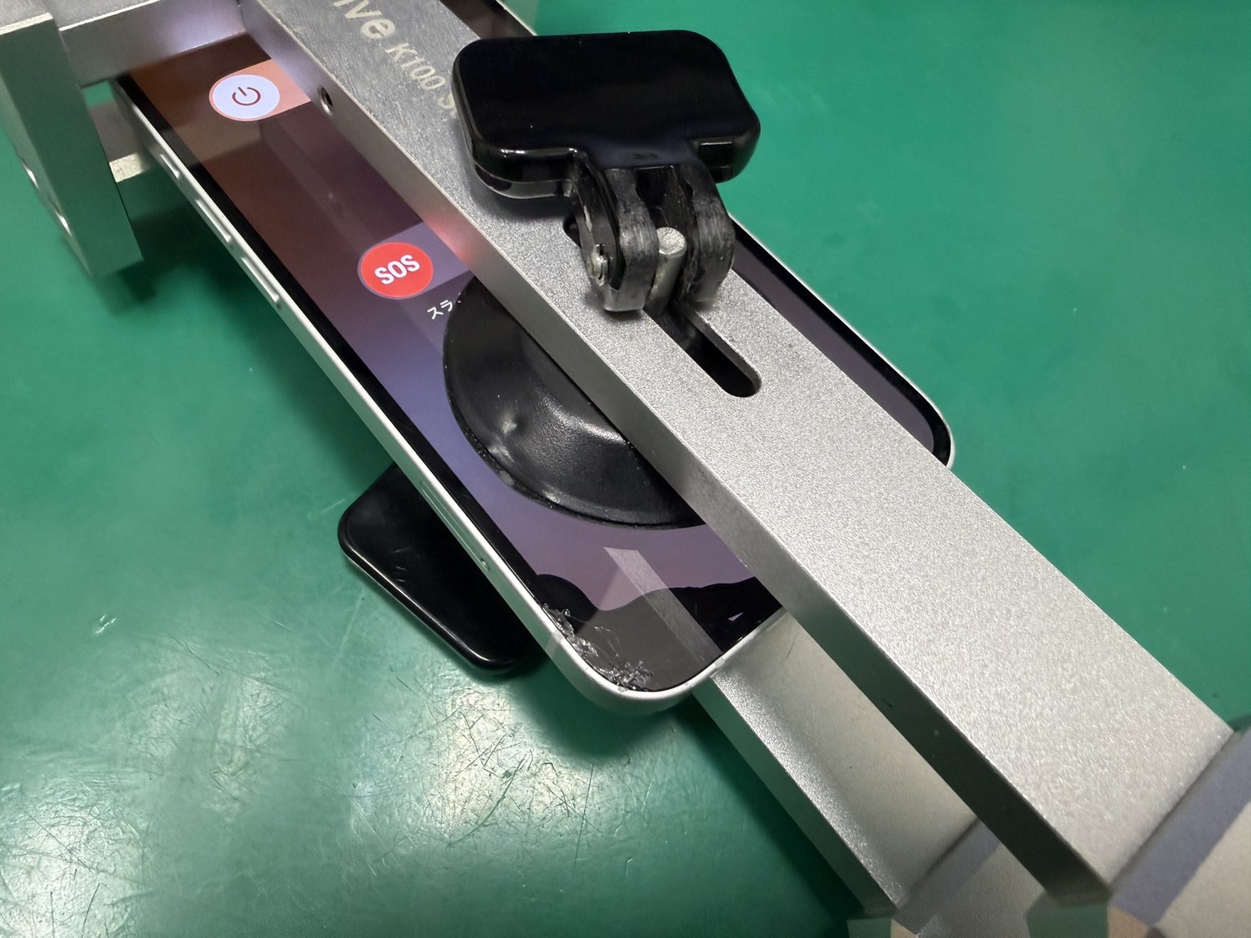 熱により粘着が十分に弱まったら、パネルオープナーを用いて画面とフレームにの隙間を作りながら丁寧に画面をはずしていきます。