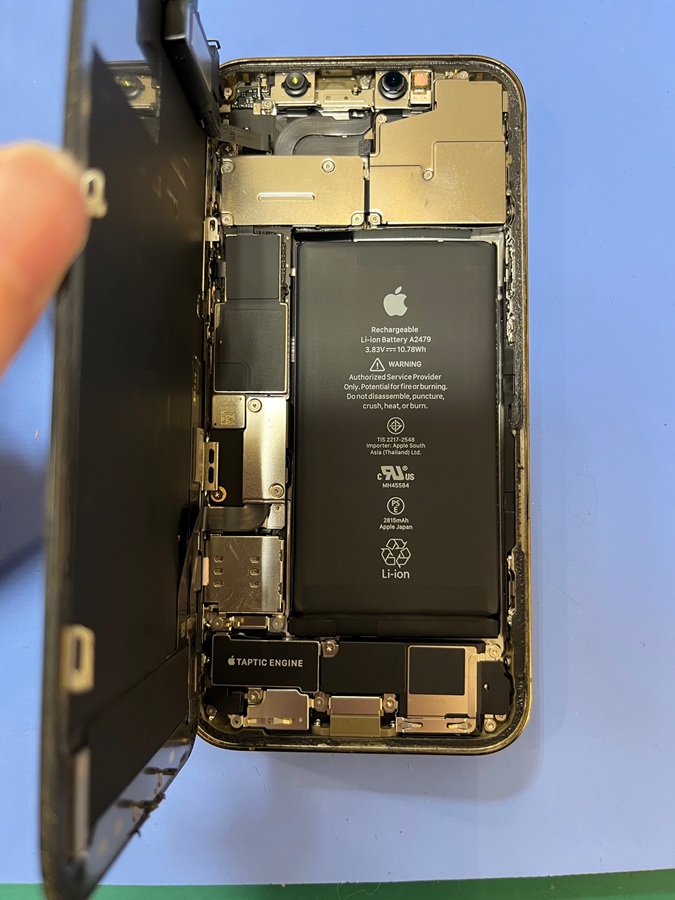 内部構造は、前回のiPhone13Proと大きく変わらないので、安全を確保するための分解になっています。