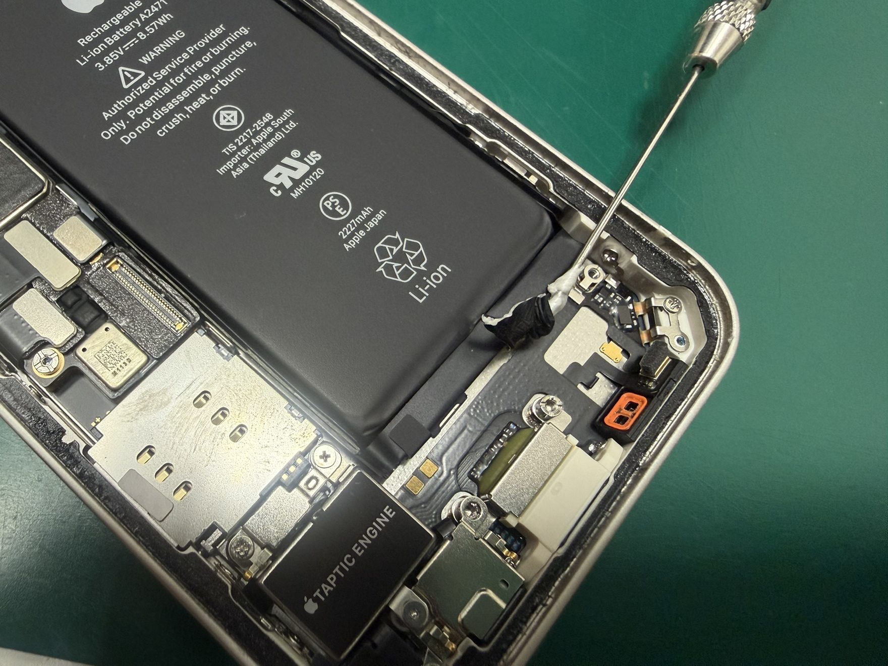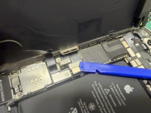 粘着を弱める為、再度パネルヒーターで端末を温めたらピッカーでバッテリーシールを抜き取ります。