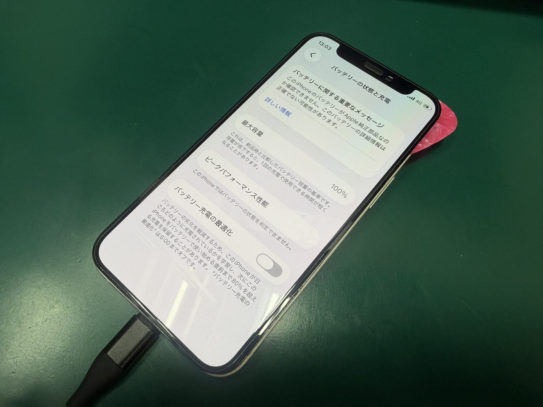 バッテリーの状態を確認させて頂いたところサービス表示と最大容量が74%という劣化を示す数値となっていました。