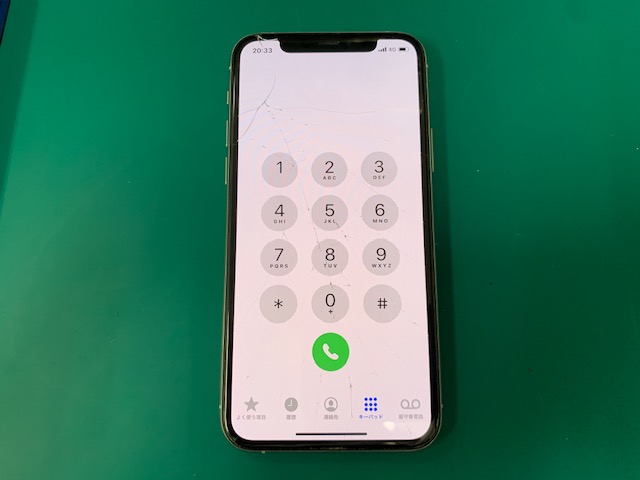 全面のガラスが破損してしまったiPhone11proです。