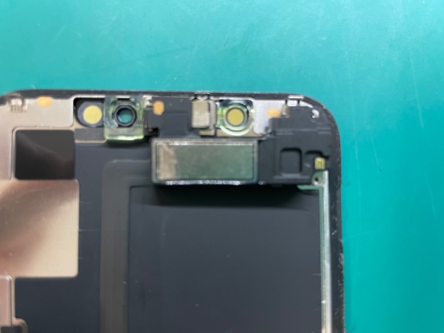 FaceID(顔認証)や電話のイヤフォン、近接、環境洸センサーが集約されたセンサーアセンブリを取り外しましょう。