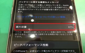 80%を下回ると、急に電源が落ちたり、充電の%表示がおかしくなったりしますので、そのようになる前に交換したいところです。