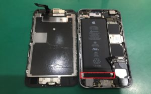 たまに、自己修理失敗で燃えたバッテリー付のiPhoneをお持ち込みされるお客様もいらっしゃいます。