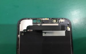 イヤースピーカーの取り外しの際に気を付けました。イヤースピーカーはフロントパネルにくっついていますのでパーツを傷つけないように専用のヘラを使いながら慎重に行いました。