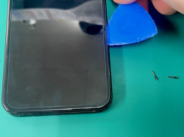 薄い金属ヘラやピックを使って端末を開けていきます。