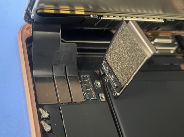 プレートを持ち上げたら、画面に繋がっているコネクタ3つを取り外します。