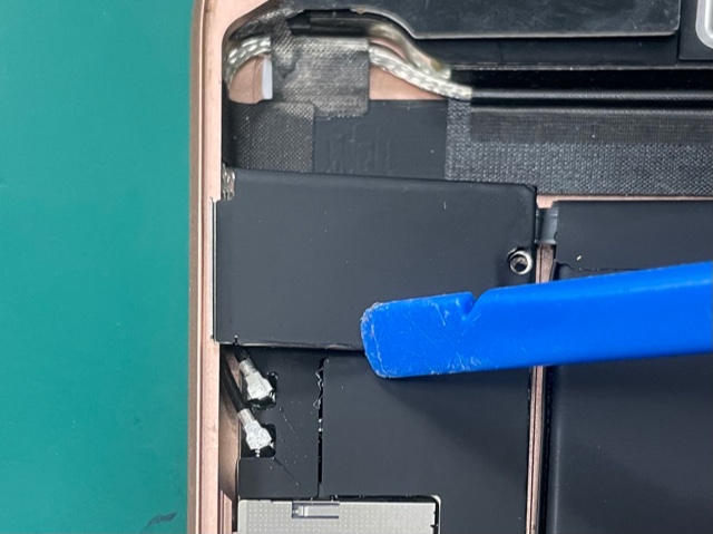 温まった後、金属ヘラを本体と画面の間に差し込みます。
