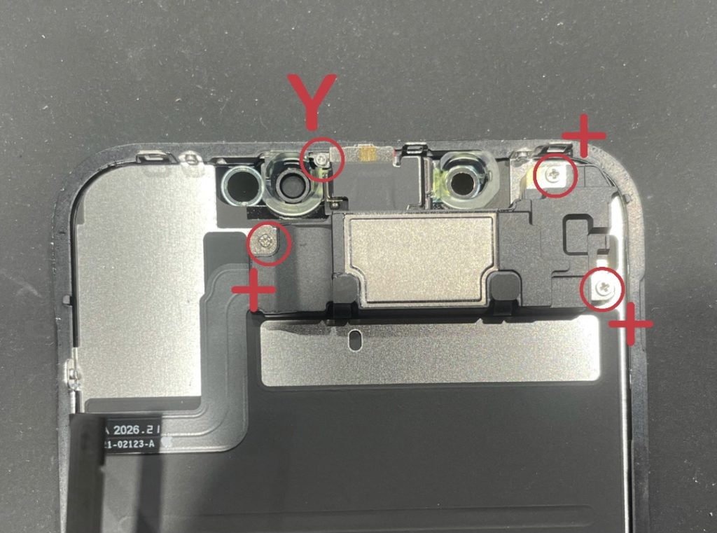 4箇所ネジで留まっています。左上のみY字ドライバーで、他3箇所は+ドライバーです。