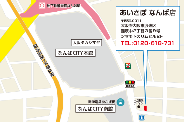 〒556-0011 大阪府大阪市浪速区難波中2丁目3番9号 シマモトスリムビル2F