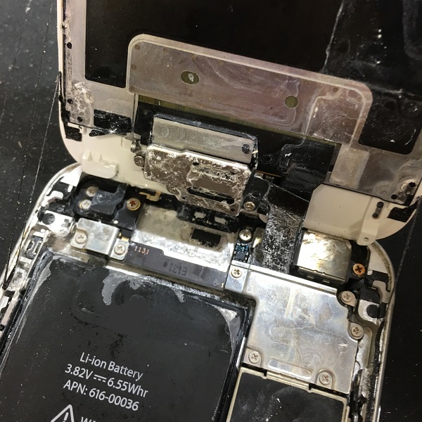 上部インカメラの部品にもガラス破片がついてしまっています。