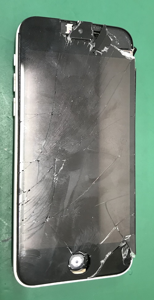 多いのがiPhoneの画面が割れている状態でそのまま使用してる方をよく見かけるのですが、そのまま使用しているとガラスの破片の圧力や割れの隙間から水分、ほこりなどの異物が混入して液晶まで影響を受けてしまい、タッチパネルの操作に不具合が起きてしまったり、そのまま基盤部分まで影響を受けて電源が入らなくなる事もあります!