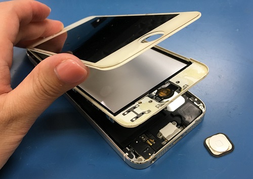 ガラス面とフレーム部分が完全に剥離しておりホームボタンも