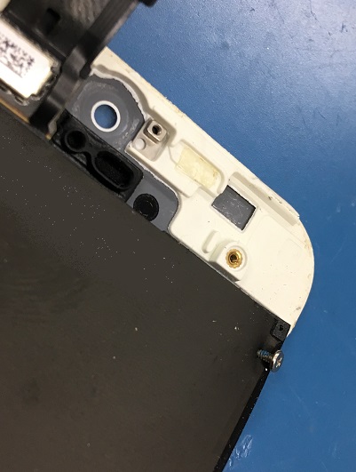 通常はフレーム部分を止めるネジが、液晶面に刺さっておりました!