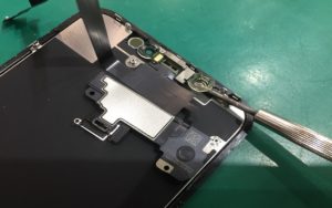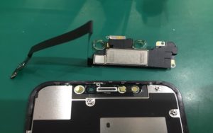7.当店の新品のフロントパネルに移植するパーツはイヤースピーカーだけですので、ここまできたら後は逆の手順で組み込んでいくだけです!
